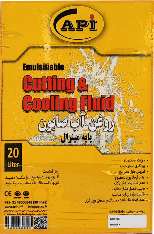 روغن آب صابون | آب صابون مینرال | روغن امولسیون شونده | روغن تراشکاری | روغن خنککننده فلزات | روغن ماشینکاری | روغن CNC | روغن صنعتی | آرین پترو ایده | روانکار فلزات | روغن برش فلز | cutting fluid | metalworking coolant | mineral soluble oil | Arian Petro Ideh